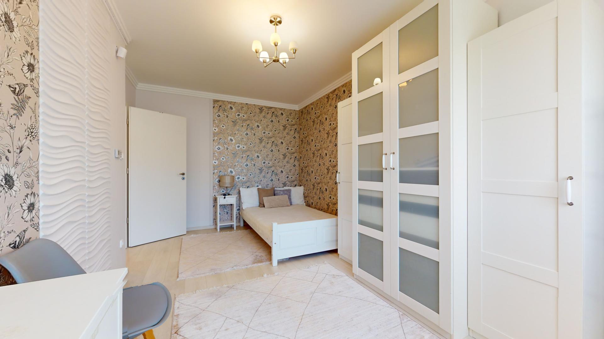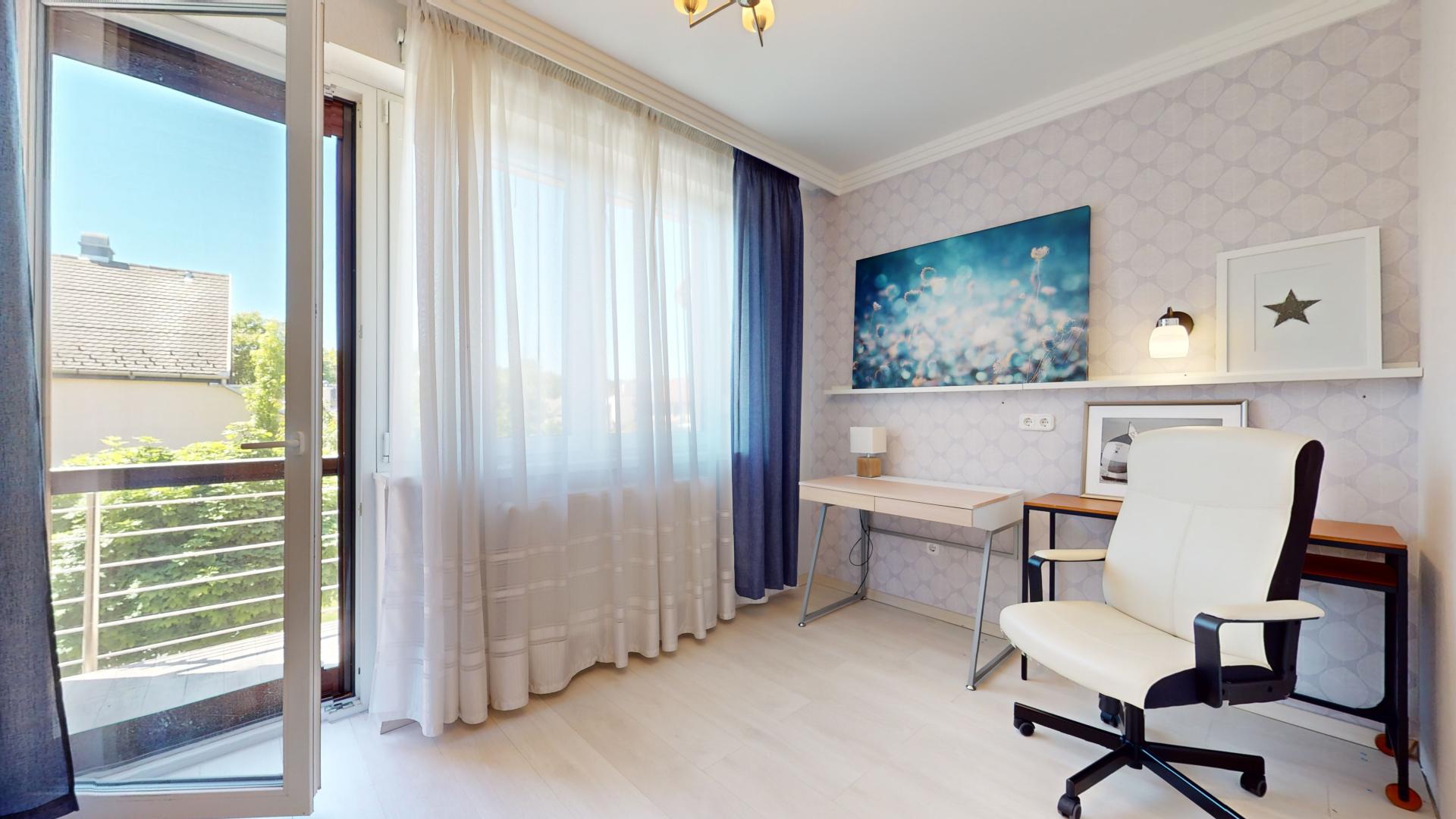3 külön nyíló szobája, masszázskádas, dupla mosdóval felszerelt fürdője, mosókonyhája, bárpultos konyhája, óriási nappalija a hangulatos kandallójával ideális nagycsaládosok részére.