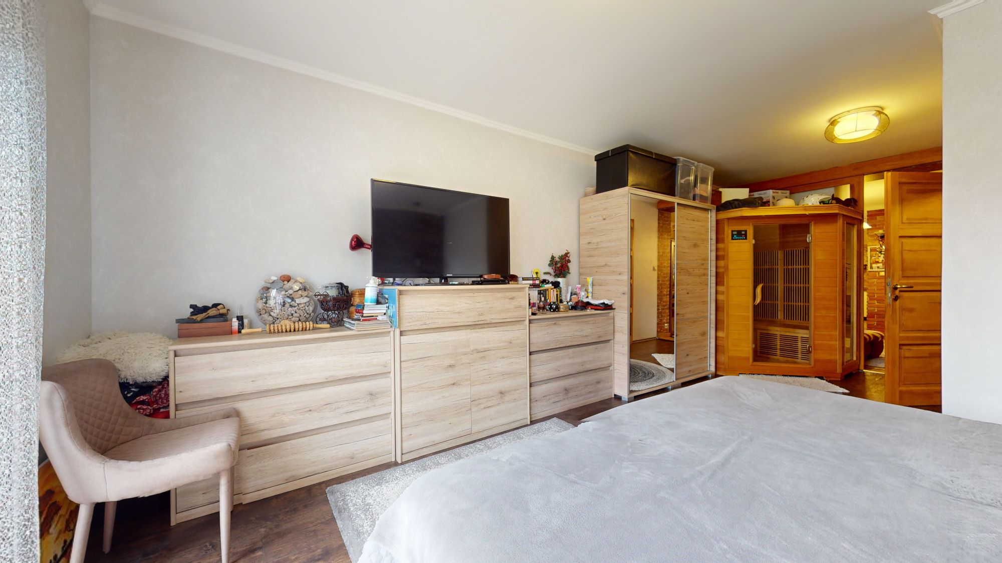 - A földszinten egy tágas amerikai konyhás nappali,1 külön szülői lakrész(hálószoba, szauna, fürdő mellékhelyiséggel) valamint előszoba, WC, kazánház található.