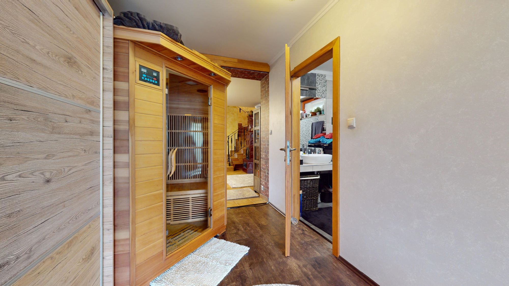 -Az emeleten 3 külön nyíló szoba, tágas fürdőszoba WC-vel.